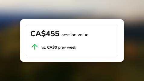 Shows the number of sessions issued during the selected time range. The percentage change below reflects growth or decline vs. the previous equivalent period.