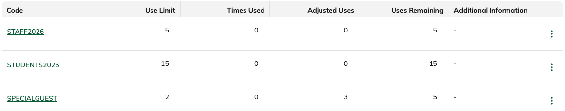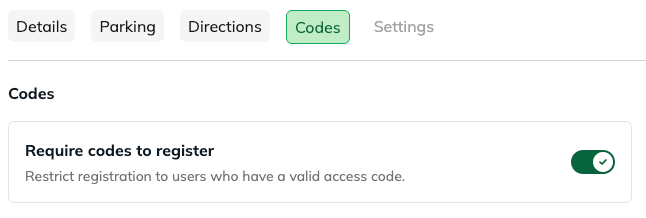 Codes allow you to control who can access a permit type by requiring users to enter a code during registration.