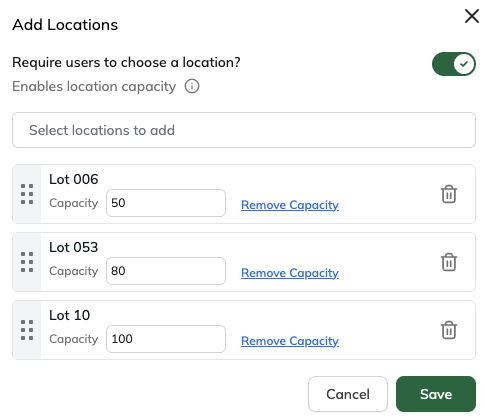 Note: Parking locations are pulled from the set Location Places. Learn more about Places here: Offstreet Places